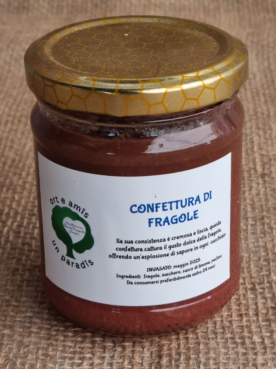 La composta di fragole, è un prodotto alimentare realizzato con fragole, zucchero e succo di limone (o succo di mela), che viene cotto a bassa temperatura e sottovuoto per concentrare i sapori, preservare gli aromi e le proprietà nutritive della frutta, ottenendo una consistenza morbida, spalmabile e ricca di pezzi di frutta, perfetta per colazione, merende o come ingrediente in dolci.
